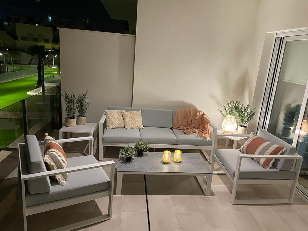 De woonkamer is ingericht met een hoekbank, salontafel, eettafel met 4 stoelen en een tv-meubel. De smart TV is voorzien van vele internationale zenders en je kunt Netflix, DisneyPlus en Amazone Prime met je eigen account kijken. Verder heeft u beschikking over een bluetooth speaker. Uiteraard is er ook gratis WiFi in het gehele appartement.